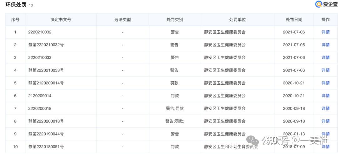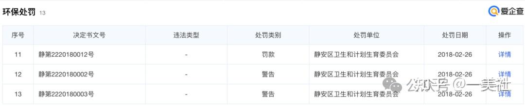 此外,爱企查显示,自2018年2月以来,上海容妍医美共涉及13项环保处罚。