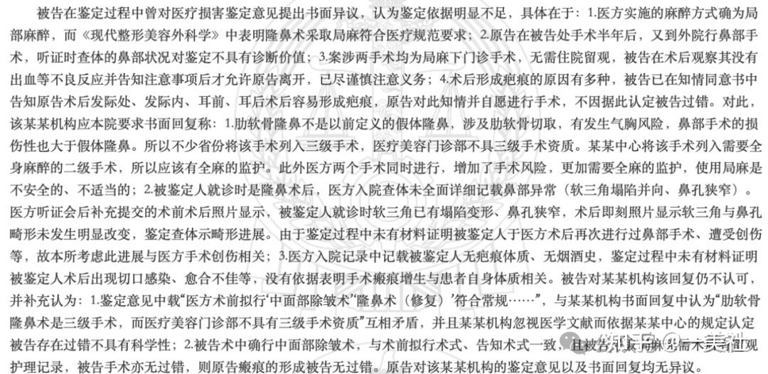 一是实际术式与术前方案不符,术前拟行“中面部除皱术”“隆鼻术(修复)”,实际实施“面颌颈部除皱术”“肋软骨隆鼻术”;