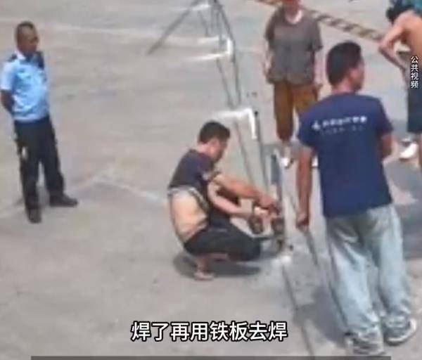 视频显示,在现场有疑似身着制服的工作人员的情况下,一群人把加油站的进出口焊上了钢条,以阻止车辆驶入加油站。记者采访当地派出所时,派出所称“你后门开了,后门是公共道路”。难道,这是解决问题的方法吗?