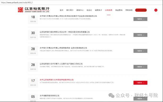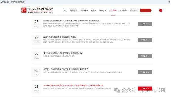 作为江西首家民营银行,江西裕民银行在信息披露环节的合规性持续失守,已触及《商业银行信息披露管理办法》的监管红线。截至2025年12月初,江西裕民银行的官网仍然没有公布2023年年度报告(在该行网站发布的所有公告中,2024年2月至6月的内容并无2023年年度报告,且其他时间段也未公布2023年年报),成为全国19家民营银行中唯一未披露该年度财报的机构。