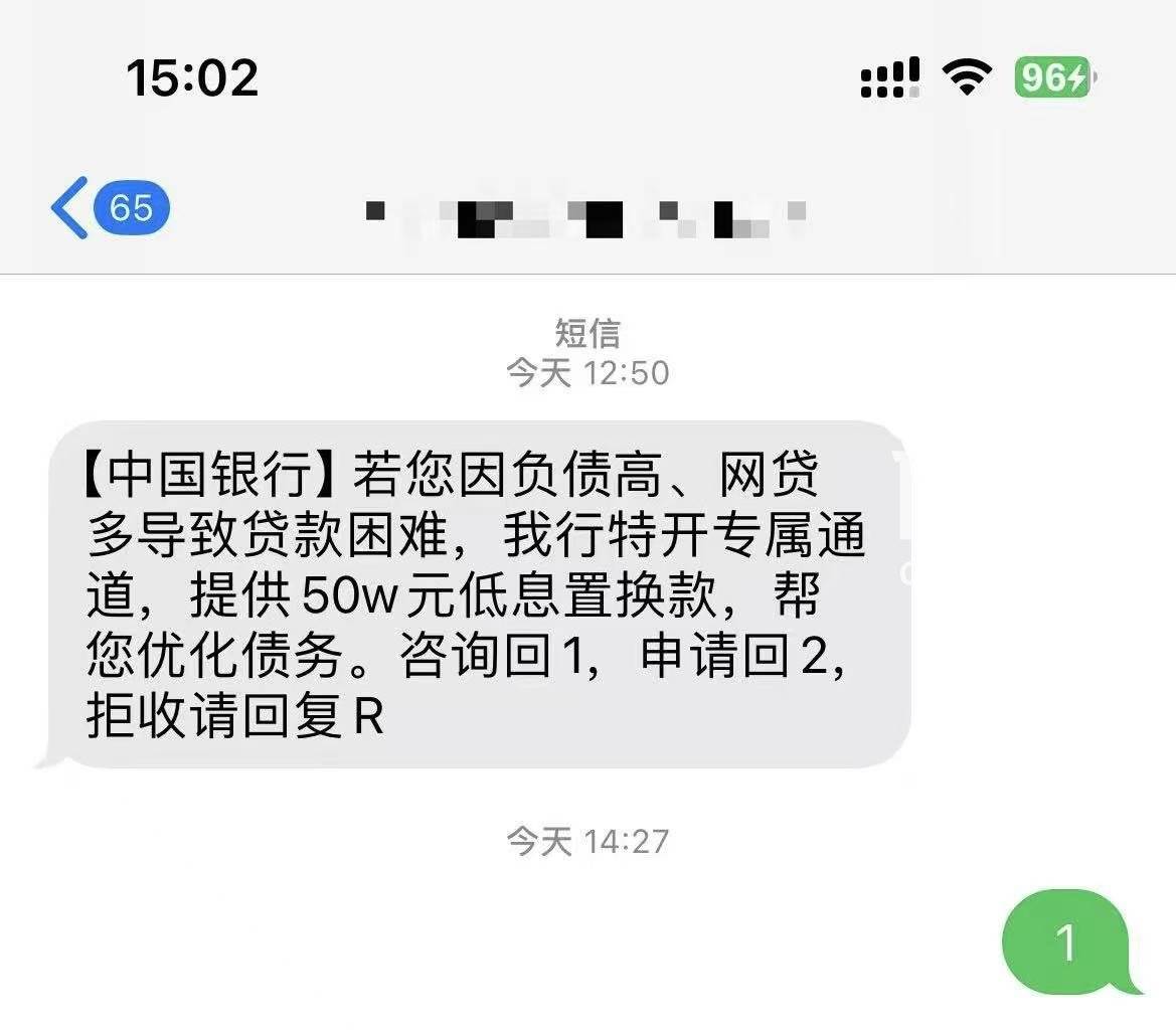 信号新闻联系中国银行反映这一情况,银行工作人员查询后表示并未与这家公司有任何合作关系,短信也并非银行发送,“我们也提醒广大金融消费者,如果收到这样的短信,不要轻易相信。若有借款需求,可以直接到银行网点咨询相关业务。”