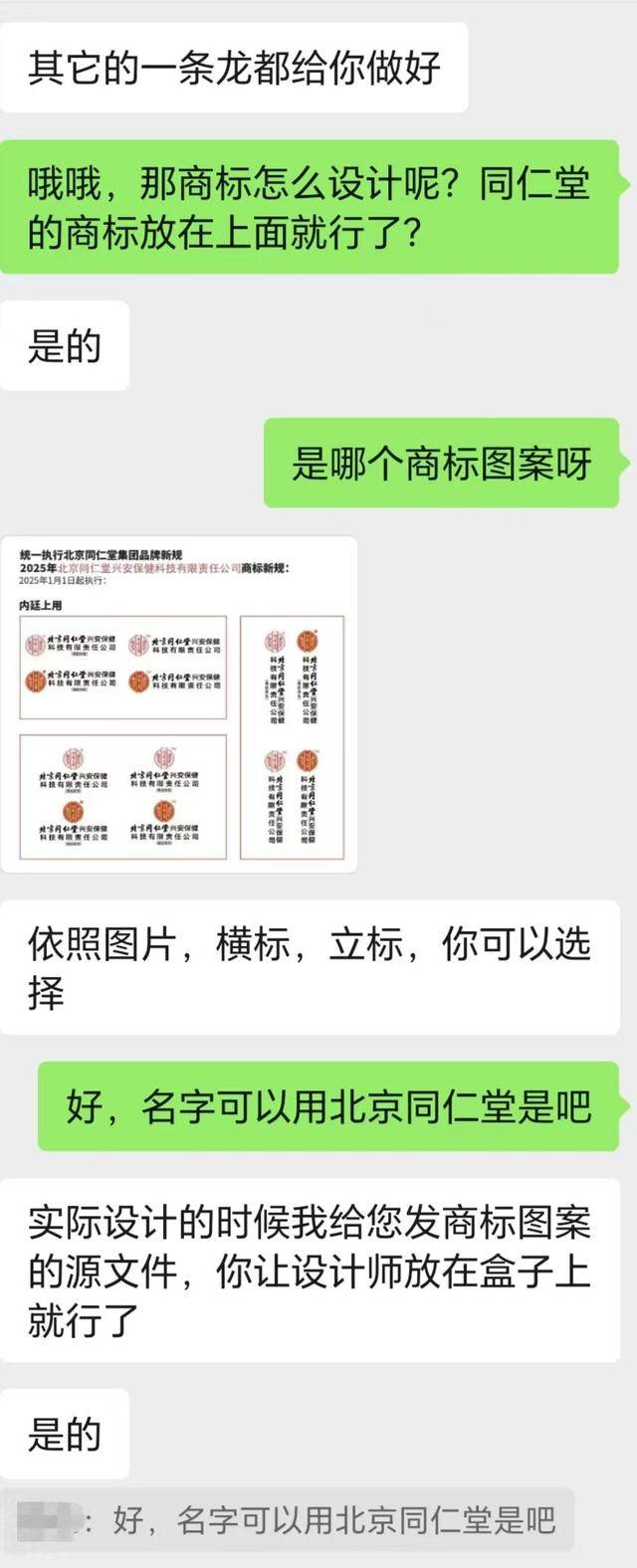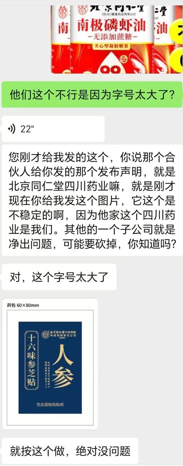 当凤凰网《风暴眼》对产品质量和品牌名称使用提出忧虑时,对方表示,“同仁堂四川净出问题,可能要砍掉,它们用的字号太大了”,并称按同仁堂兴安保健的字号设计,“绝对没问题”。