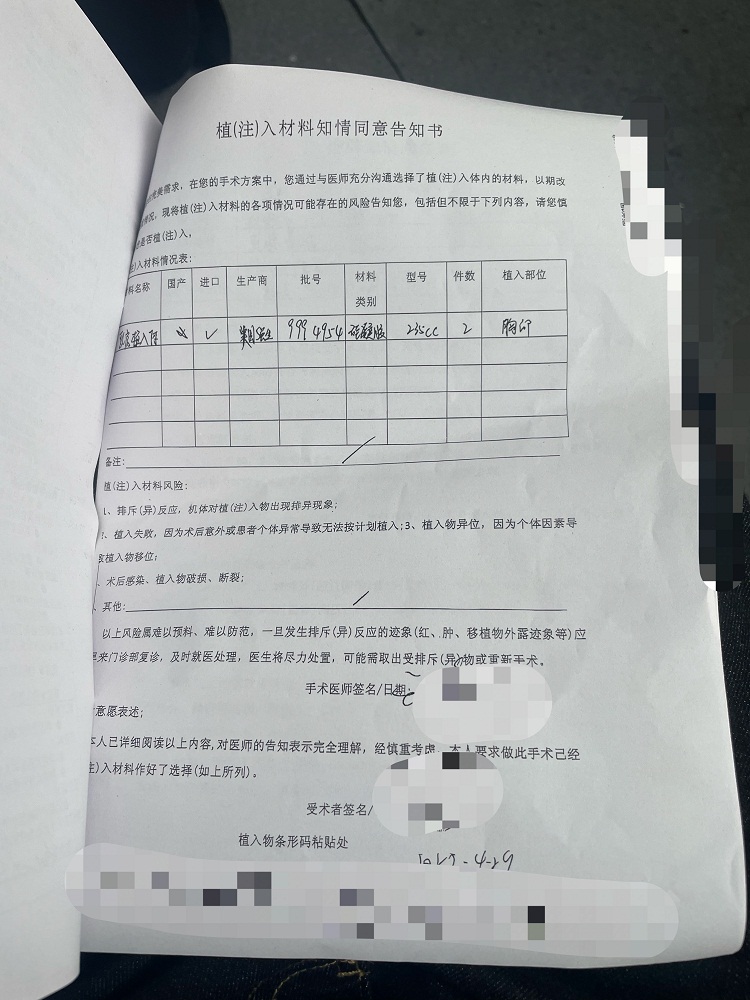 “我之前联系了美容机构,对方当时说是恢复期正常现象,但如今术后已近八个月,相关症状没有任何改善。”胡女士认为,自己身边多位朋友用同一品牌假体做隆胸手术,均未出现类似问题,因此,问题出在这次手术上。