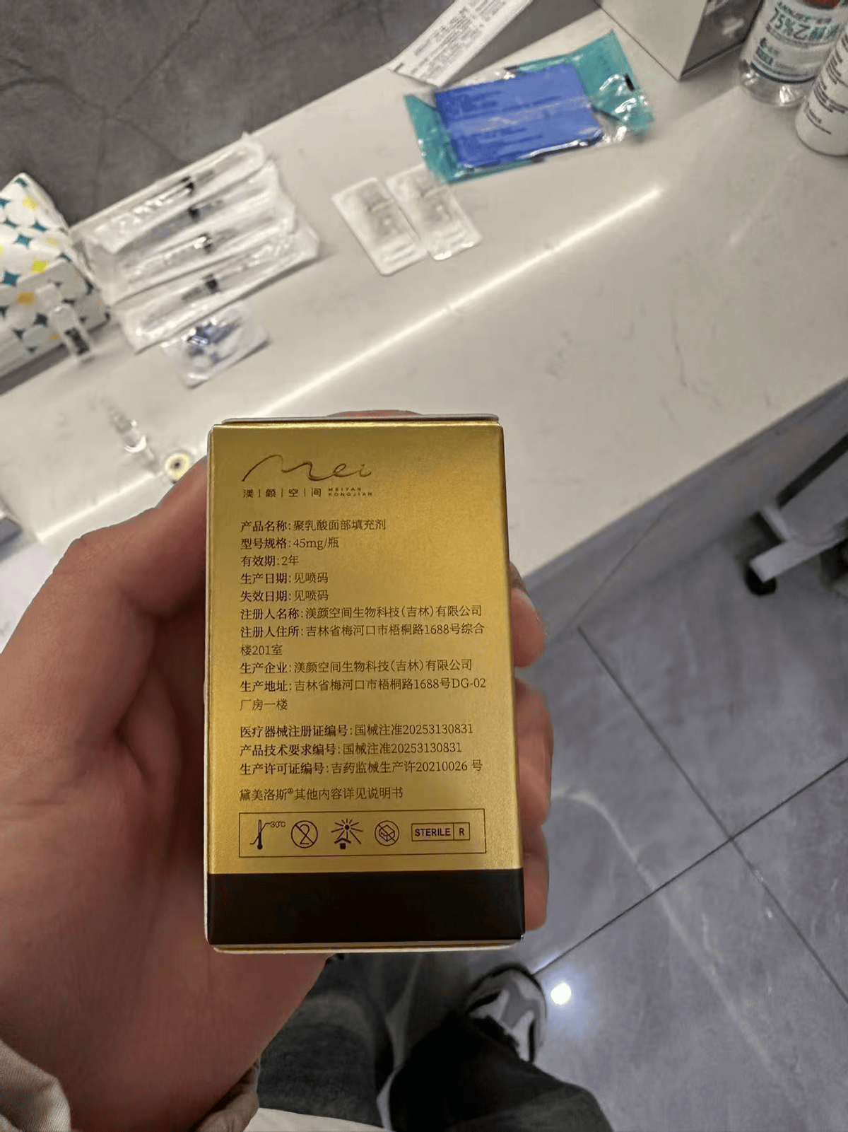 该网友回忆道,面诊后敷麻药,注射前验药,四支海魅玻尿酸变成了三支梵希思玻尿酸和一支奥西施玻尿酸。店长告知该网友,这款玻尿酸只是名字不一样,但实则就是海魅玻尿酸,包装不一样,里面东西一模一样。店长给予充分情绪价值让该网友相信她,以及已经花费了长时间的面诊+商谈,该网友被忽悠着打了。