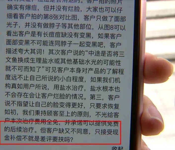 对于平台回评“不就是差评要挟吗”,林主管承认:“我们整个的用词里面,确实有些员工,在用词上是不恰当的,这个我们也认错,非常的不恰当。”他同时强调:“整个描述和陈述的内容,我觉得我们的员工是有理有据。”由于诊疗未达预期,机构已第一时间退款,并愿再补偿5000元。时女士不接受,双方表示将通过法律途径解决。此事最终因证据不足,未得出明确结论。