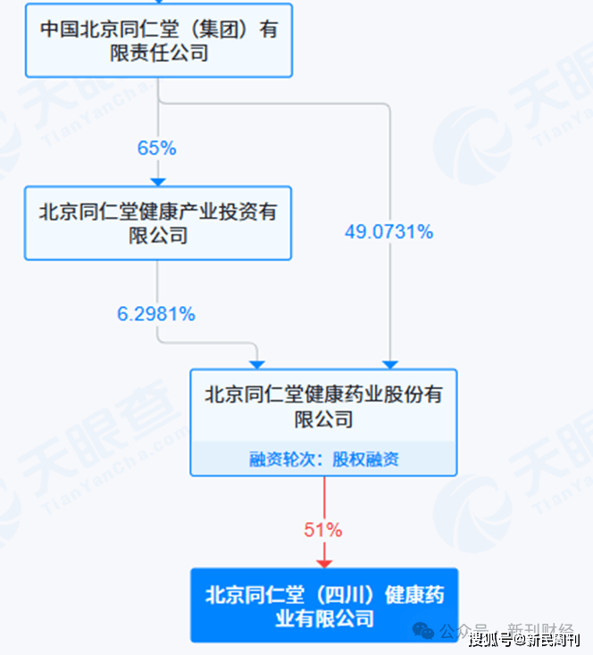 根据公开工商信息,北京同仁堂健康药业股份有限公司持有四川健康药业51%的股份,是其控股股东。而中国北京同仁堂(集团)有限责任公司又直接持有健康药业49.07%的股份。因此,涉事的四川健康药业在法律结构上属于同仁堂集团的“孙子辈”公司。