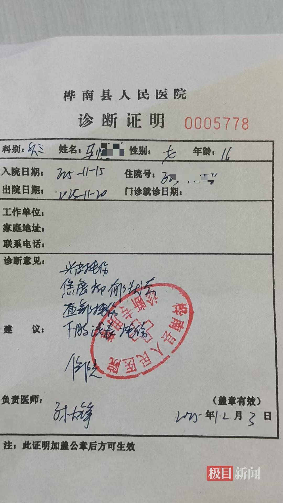 随后,极目新闻记者拨打了桦南县教育局电话,一名接线人员表示,此事他并不清楚,需要咨询局安全处。18日下午,记者接到反馈电话称,此事涉及未成年人,具体情况不方便透露,随即挂断了电话。