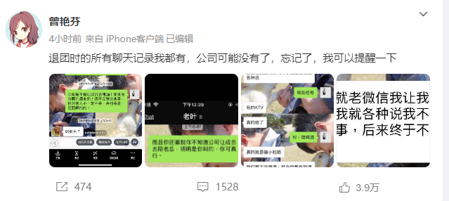 12月19日,曾艳芬再发文,晒出与丝芭”叶总“聊天记录,并表示,退团时所有聊天记录自己都有,如果公司忘记了,自己可以提醒一下。