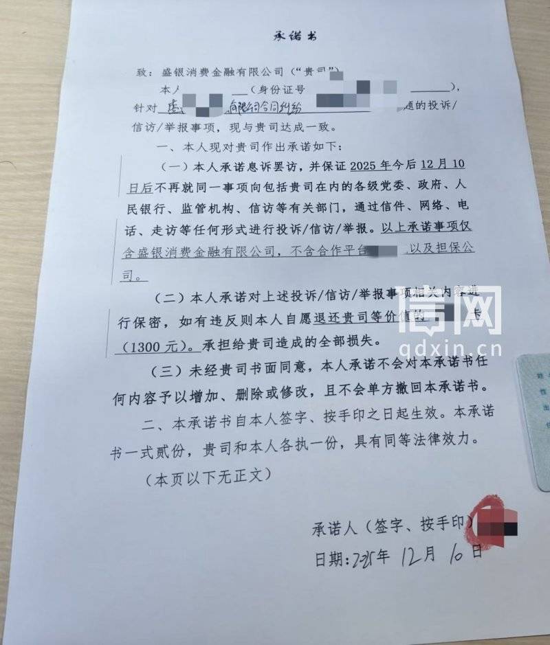 盛银消费发送给黄先生的承诺书模板(来源:受访者)
