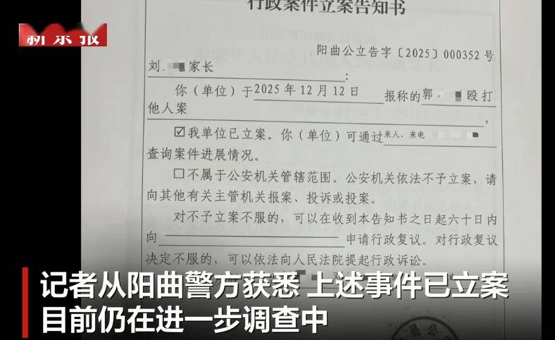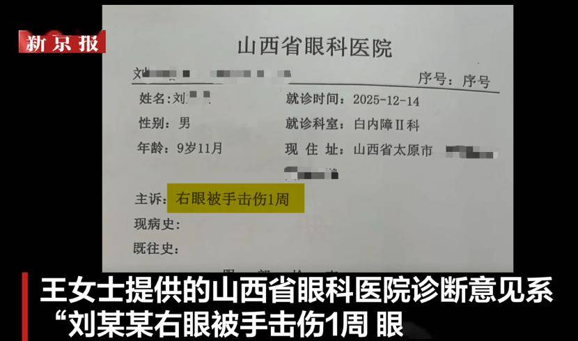 2025年12月18日,新京报发布视频《太原一老师称其孩子疑被班主任扇耳光致眼睛受伤:涉事班主任停课,警方已立案》。