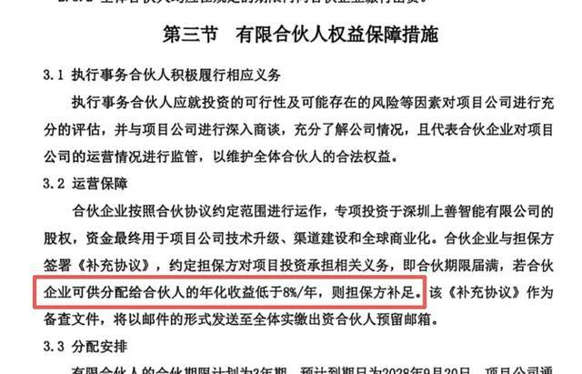 上述证券律师对记者表示,在法律文本层面,该协议没有保本条款,符合合伙企业“风险共担”的原则。但在商业实质层面,通过关联方担保“最低8%年化收益”的安排,在效果上试图构筑一个“收益保底”的预期,这与纯粹的股权投资风险特征存在出入,是判断该项目是否涉嫌“固定回报”、“实质借贷”的关键。