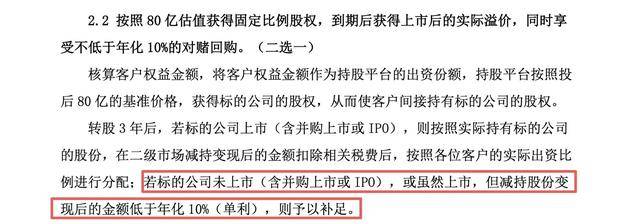 二是持股平台按投后80亿元的基准价格,获得上善智能固定比例股权,从而使客户间接持有标的公司的股权,上市后享受实际溢价。该方案还包含隐性兜底条款:若标的公司未上市(含并购上市或IPO),或虽然上市,但减持股份变现后的投资收益低于年化10%(单利),则将予以补足。