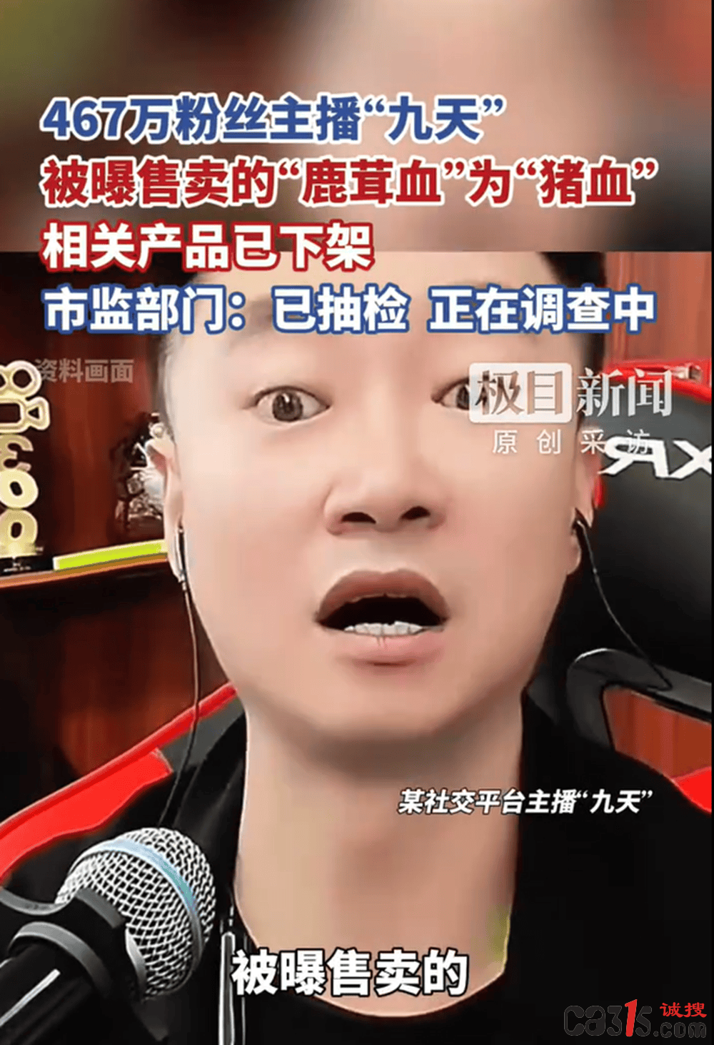 网红"九天"直播间“鹿茸血”被曝是猪血:市场监管介入调查