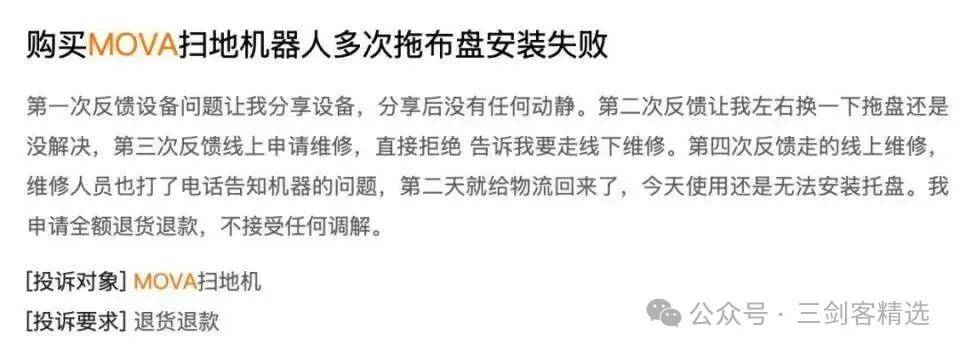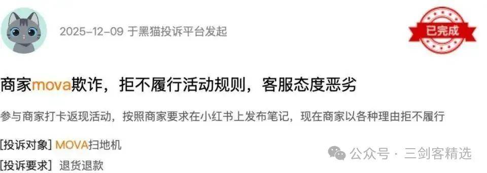 从承诺的“打卡返现”到产品“故障不断”,再到售后“维权无门”,MOVA品牌正在一步步透支消费者的信任。当营销的噱头掩盖了产品的本质,当短期的利益凌驾于长期的信誉之上,MOVA的末路狂奔似乎已经不可避免。