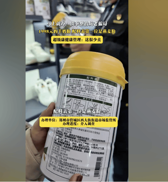 近日,郑州市管城区西大街街道市场监管所介入调查一起涉及高价羊奶粉的消费疑云,一款名为“洋初乳蛹虫草人参益生菌羊奶粉”的产品成为焦点。这款标价1998元一盒的羊奶粉,其配料表与宣传严重不符,引发消费者质疑,市场监管部门迅速行动,展开深入调查。
