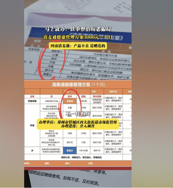 近日,郑州市管城区西大街街道市场监管所展开了一场针对健康管理领域的整治行动,“清麦通健康管理方案”成为此次行动的焦点。该方案每月终端零售指导价高达3000元,其销售模式、宣传内容以及与健康管理的实际关联性引发了诸多质疑,市场监管部门已介入调查。