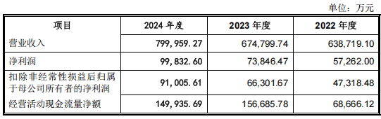 基于最新招股书,公司2022-2024年营收分别为63.87亿元、67.48亿元和79.99亿元,净利润分别为5.73亿元、7.38亿元和9.98亿元,保持增长态势。