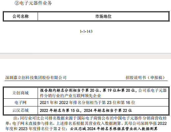 在核心业务的市场排名方面,嘉立创披露了其PCB业务和电子元器件业务的具体位次。