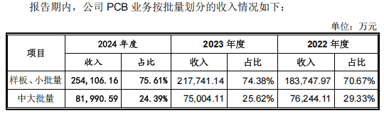 令人担忧的是其业务结构隐患。公司PCB收入中小批量订单占比高达75.61%,中大批量市场开拓不足。这种高度依赖长尾小单的模式,在招股书中被包装为“差异化优势”,实则暗藏增长天花板。