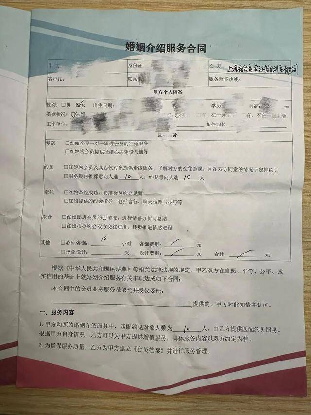 孙女士与婚介机构签的《婚姻介绍服务合同》