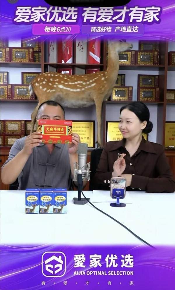 2025年,记者在数月追踪暗访时见证:9月21日在“爱家优选”直播间中,主播将“梅花鹿茸血胰腺丸”宣称“可稳定血糖、预防并发症”,甚至给出具体服用方法。9月26日的直播间中,植物饮料“桑黄原浆”宣称“可消除甲状腺、乳腺、肺部结节”。日用品“鸸鹋油”宣称为治疗风湿、鼻炎等“神器”。工艺品朱砂宣称为“守护改运”之物。娃娃鱼肽宣称“可修复受损细胞、预防癌症”。运动营养食品被定位为“中老年补钙必需品”,以“骨质疏松+摔跤=瘫痪、死亡”制造焦虑。