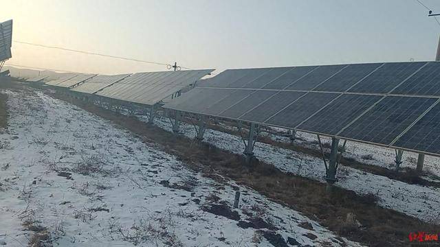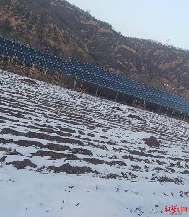 杨某向红星新闻记者提供了现场所拍摄的照片和视频,显示该光伏发电项目为子长市新能源开发有限公司11.7兆瓦光伏电站。在这片耕地上,光伏电板一排排错落摆放在田埂之间,经过一场大雪之后,田地间的雪还没有融化,只有光伏电板下面未落雪长着荒草。