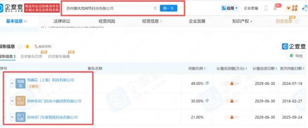 2024年7月前,胡已伟为苏州暴风雪网络科技有限公司大股东,但同年7月21日其变更为上海汇倾信息科技有限公司,即现在的雪融花(上海)科技有限公司。