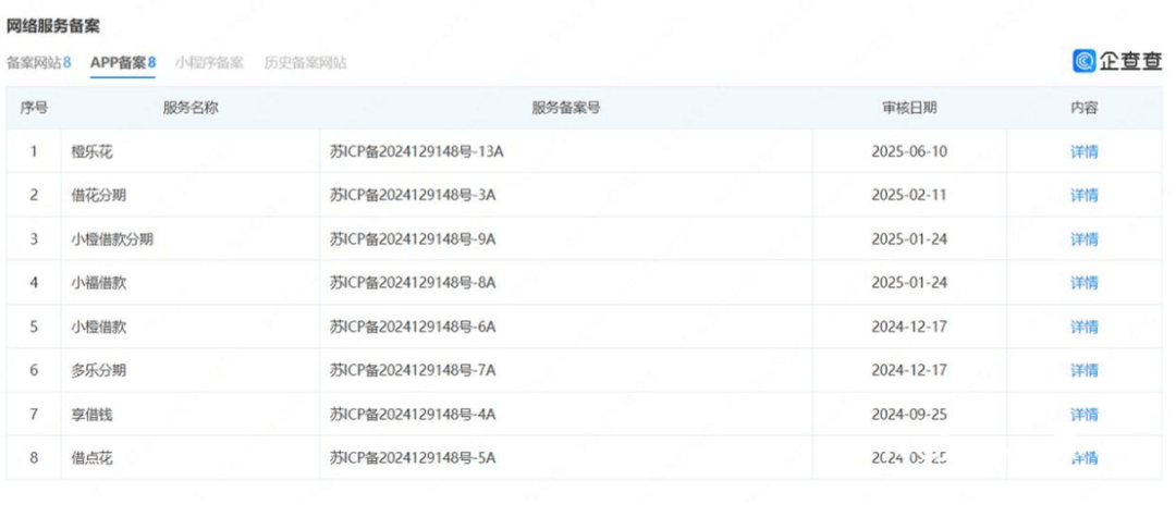 不仅如此,据媒体报道,今年以来乐在科技小贷在 APP 备案方面动作频繁,自 2024 年下半年至 2025 年上半年,大量借贷 APP 通过审核。