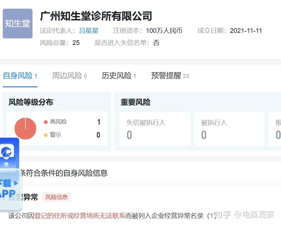 后端是实体医疗机构:广州知生堂诊所有限公司拥有互联网问诊资质,但已被列入经营异常名录;中医院。