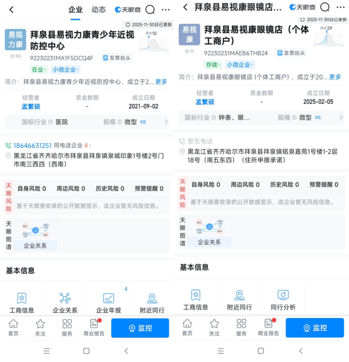 令人费解的是,孟繁硕名下其他经营主体均聚焦近视防控与眼镜销售,与知识产权维权毫无关联。