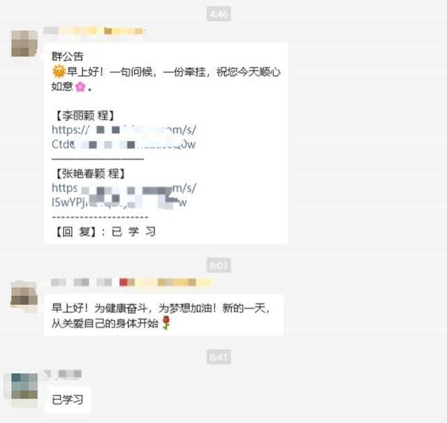 记者发现,这些养生群的运行模式都非常相似。每天,群主都会发布好几门课程信息,号召老人“打卡上课”。而这些课程,过几天之后就无法查看,无形中给了老人一种“不看就可惜”的紧迫感。另外,“群主”还会要求老人每天看完之后在群里打卡回复。