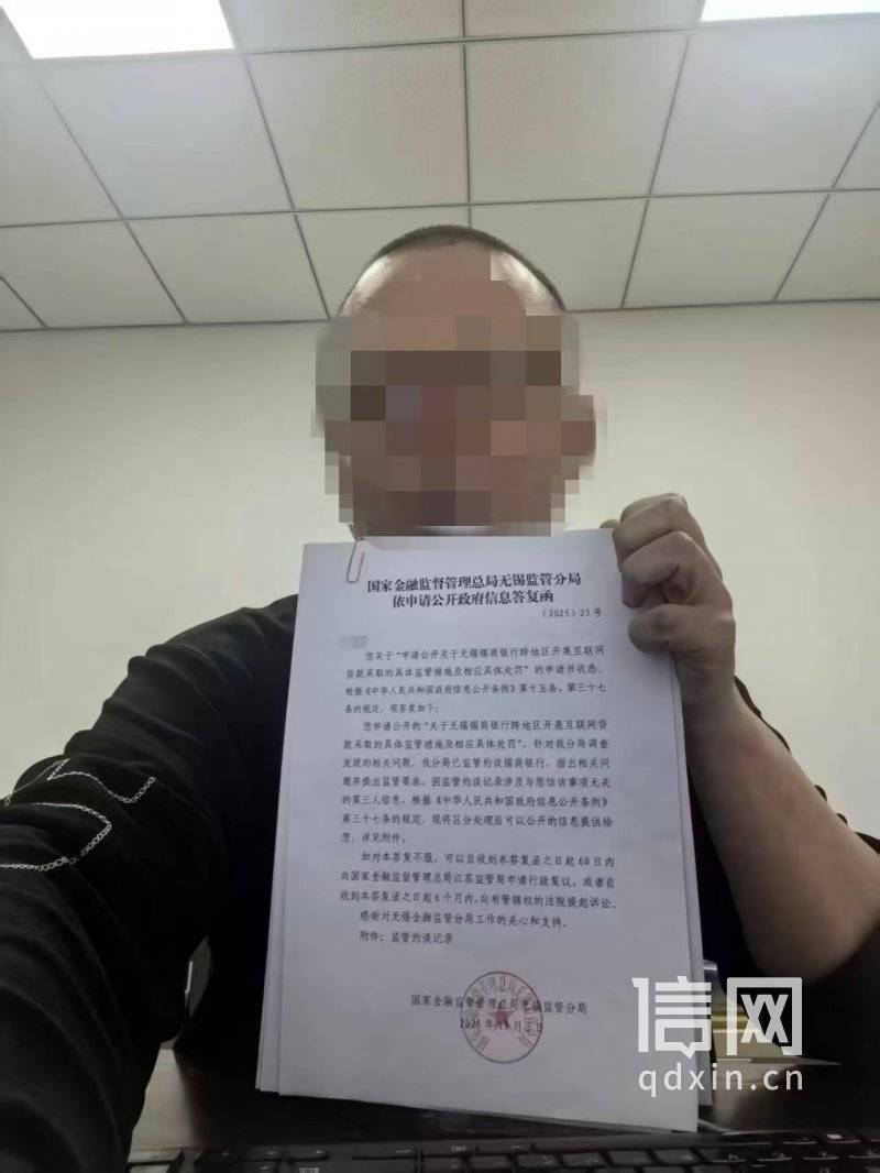 2025年9月,李先生向国家金融监督管理总局无锡监管分局申请政府信息公开。信号新闻在该局的答复函中看到,经检索,不存在李先生申请公开的“无锡锡商银行股份有限公司跨注册地开展互联网贷款业务的行政许可”。2025年10月,该局在答复意见书中进一步明确,锡商银行放款时“未对你(李先生)是否为异地客户进行判定,存在跨地区开展互联网贷款业务的问题,我分局将对无锡锡商银行采取相应监管措施”。