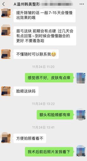 原本冲着1100元的特价除皱项目去美容,结果却在温州韩美之星医疗美容机构工作人员和介绍人的轮番游说下,稀里糊涂花了4万8。项目做完后不仅没达到预期效果,还出现了皮肤过敏、精神恍惚等不适症状。