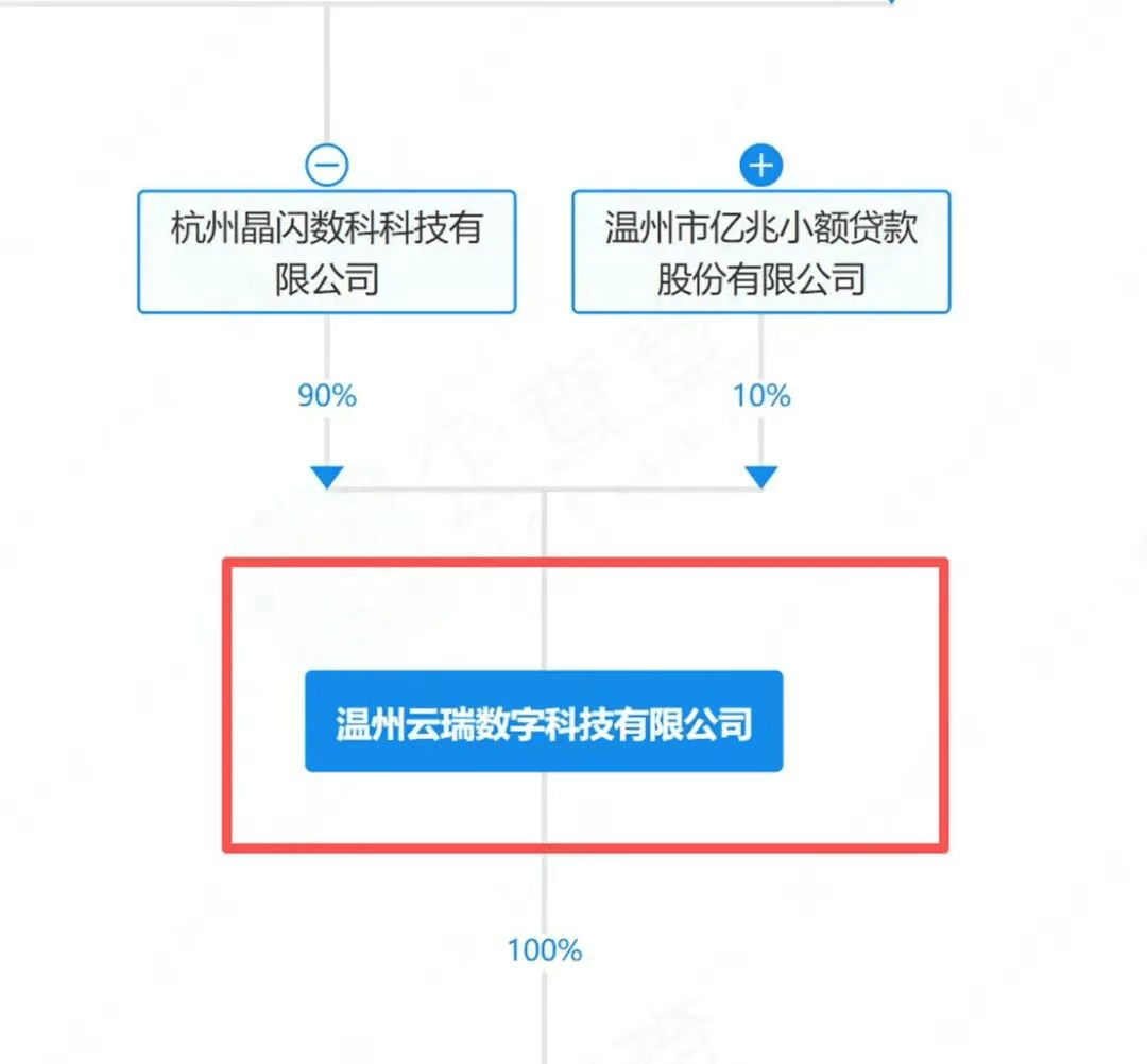 值得注意的是,除合作关系外,晶闪数科和亿兆小贷还联合投资了温州云瑞数字科技有限公司,前者持股90%,后者持股10%。