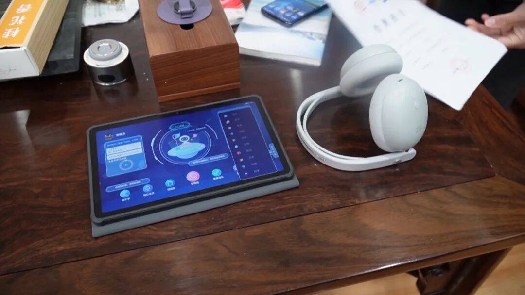 冷女士:他们给了我一个平板电脑和耳机,这个耳机他们说的名字叫“智慧仪”,能够促进大脑的发育,还能促进孩子的睡眠。