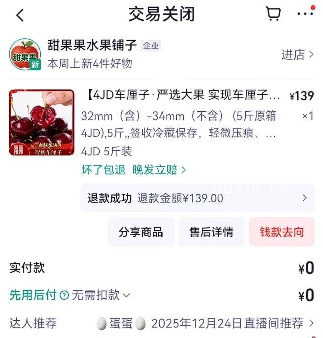 蛋蛋直播再陷AB货争议:宣称的4J车厘子只有2J大 坏果率还高