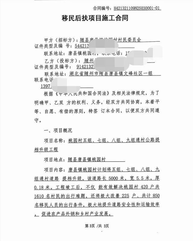 据举报材料显示,2025年唐县镇实施的两个重点项目存在明显问题。其一为“桃园村6-9组移民道路硬化工程”,中标价79.9万元;其二为“两水村‘三七’路提档升级项目”,中标价95.6万元。这两个项目的中标单位均为“随州旭骉建筑工程有限公司”。记者调查发现,该公司注册于唐县镇文峰社区,但实则是一家“无证企业”,不仅未取得《建筑业企业资质证书》和《安全生产许可证》,也没有配备符合条件的建造师等专业技术人员,甚至未为员工缴纳社会保险,完全不具备承接政府工程项目的法定资格。