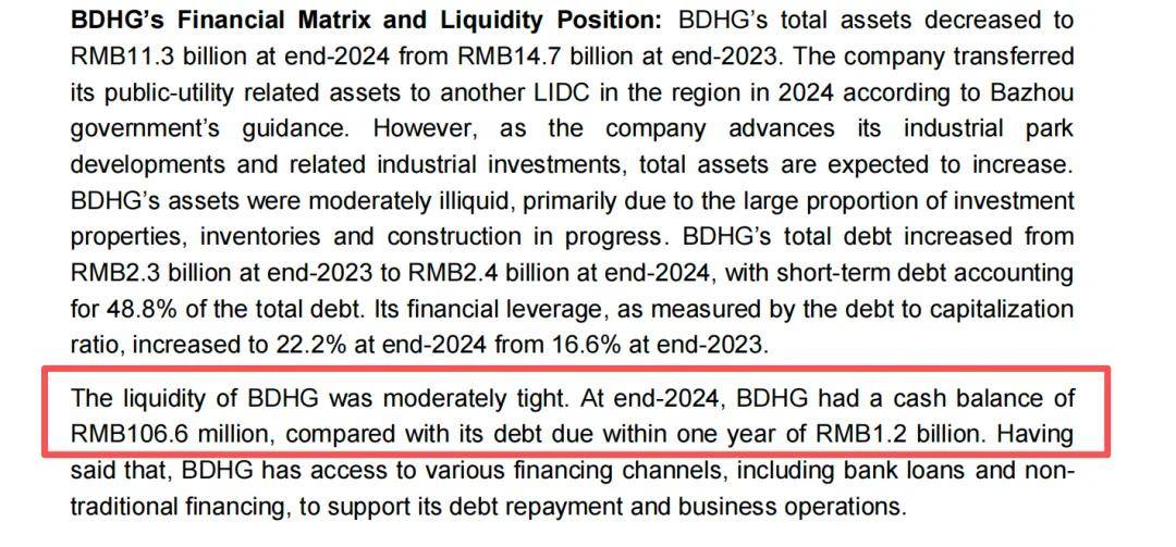 总资产2024年大幅下降,主要系公司2024年将其公用事业类资产转移到区域内另一家城投平台。但考虑到公司持续推进工业园区开发及相关产业投资,总资产规模预计实现增长。