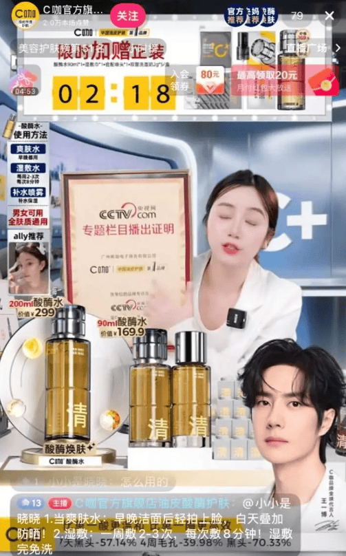 从品牌定位来看,C咖主打“油皮护理”和“精准护肤”,核心竞争力本应是产品研发与功效验证。但在直播电商“短平快”的流量竞争中,C咖选择了更省力的营销捷径:用“央妈推荐”强化品牌权威性,用“国家兜底”消解消费者对产品品质的顾虑,再借助王一博的粉丝流量完成转化。这种“重营销、轻研发”的策略,让品牌逐渐丧失了对产品力的自信,只能依赖虚假话术维持市场热度。
