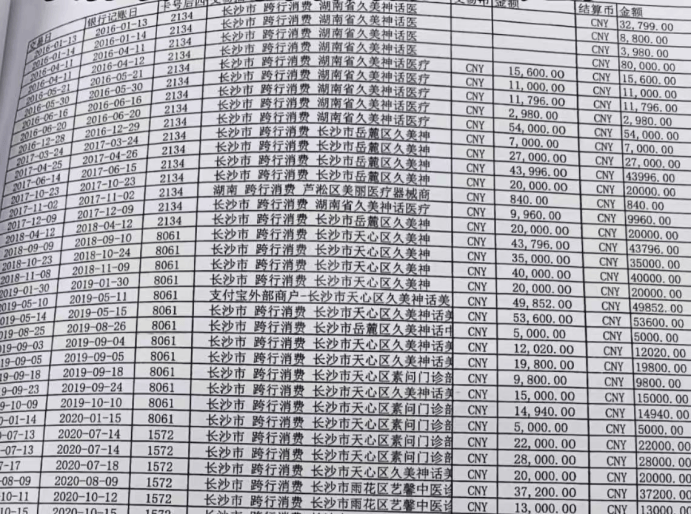 徐女士银行卡消费记录