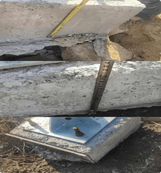 图为该项目某地段监测设备现浇基础(规格仅20cm左右),与设计不符。