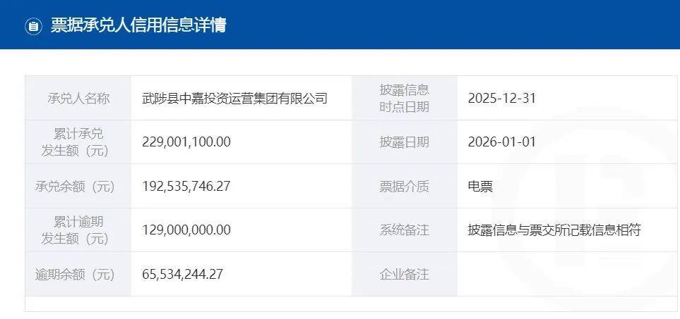 作为河南省焦作市武陟县重要的基础设施建设及运营主体,武陟县中嘉投资运营集团有限公司(以下简称“武陟中嘉集团”)承担着县城建设、产业升级的重任。但近一年以来,该公司多次出现票据逾期的情况,引发了市场对区域国资平台流动性的关注。