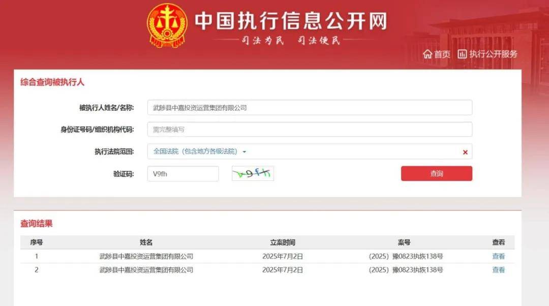 值得关注的是,武陟中嘉集团深陷法律纠纷。截至2026年1月8日,中国执行信息公开网和企查查数据显示,武陟中嘉集团有1条被执行人记录,执行标的1214.10万元,立案日期是在2025年7月2日,河南省焦作市武陟县人民法院将武陟中嘉集团纳入被执行人名单,案号为(2025)豫0823执恢138号,这意味着公司信用受损。同一日,武陟中嘉集团控股子公司武陟县投资集团有限公司也被法院列入被执行人名单,武陟中嘉集团对其持股比例达90%。