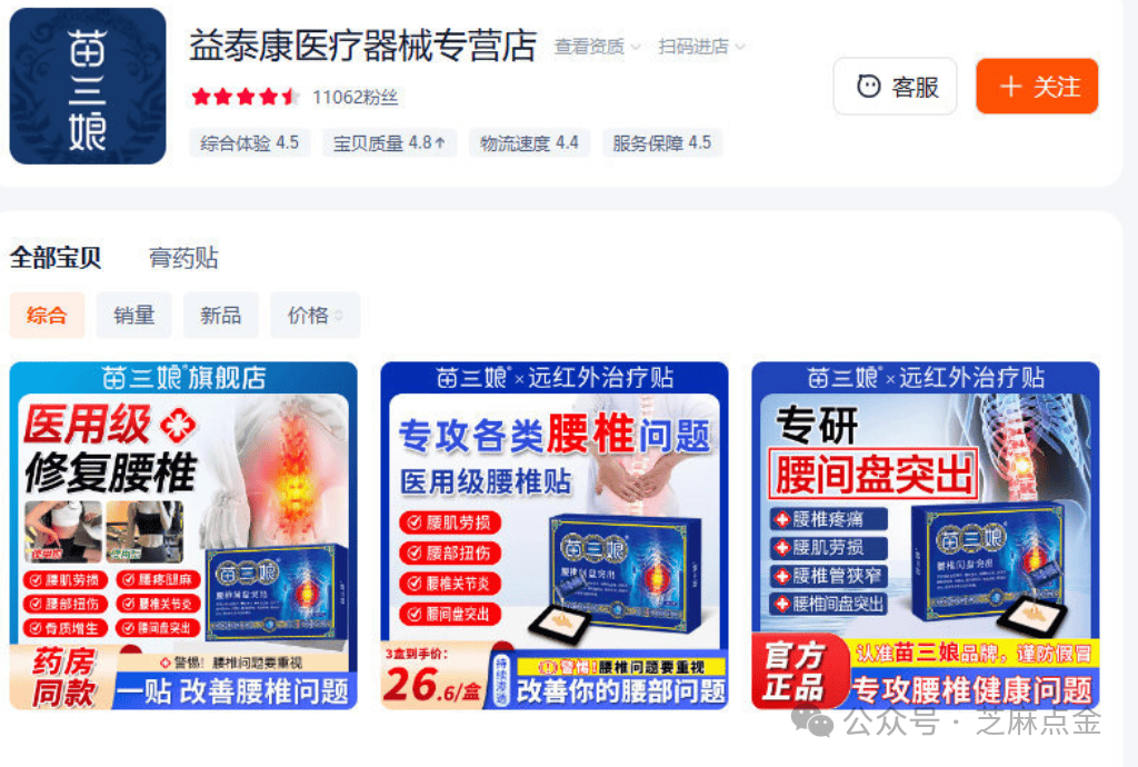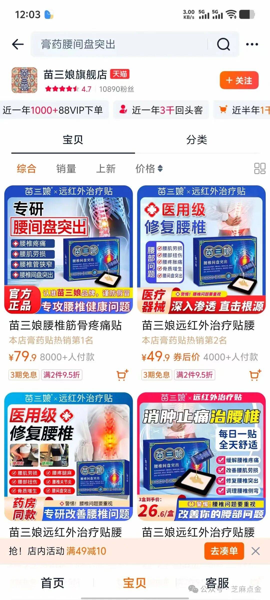 这个骗局始于电商平台上一款销量10万+的“苗三娘筋骨疼痛贴”,售价仅79.9元三盒。