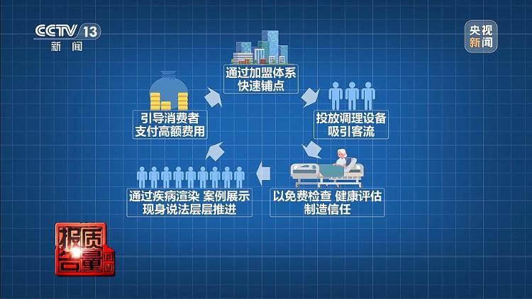 调查显示,天津伏羲姚鼎全民健康管理有限公司围绕“清淤术”,构建出一整套商业闭环。通过加盟体系快速铺点——投放调理设备吸引客流——以免费检查、健康评估制造信任——通过疾病渲染、案例展示、现身说法层层推进——最终引导消费者支付高额费用。