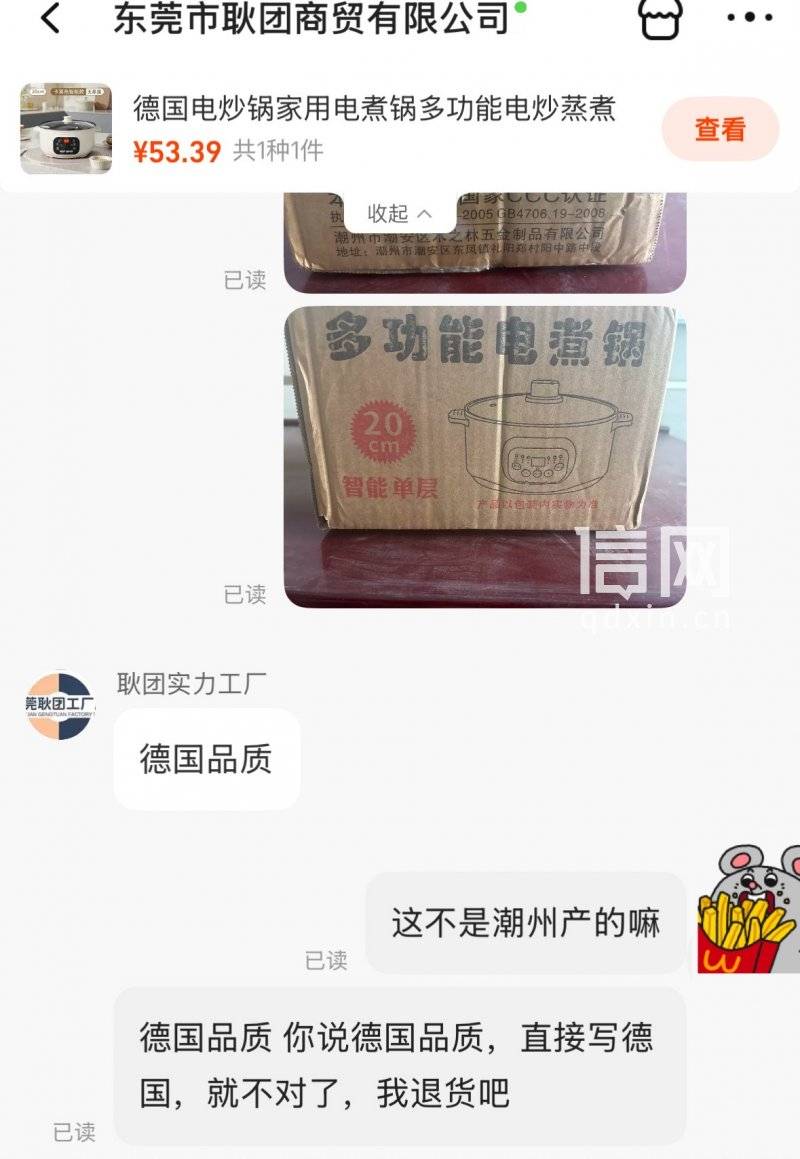 1688平台买的“德国电煮锅”却产自潮州 商家称锅是德国品质