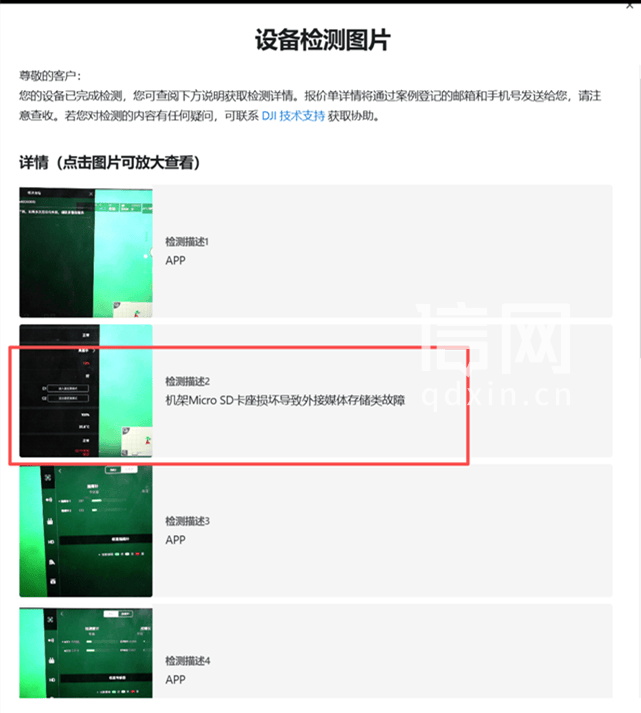 张先生介绍说,自己是大疆的忠实用户,他的公司主营视频拍摄,购买的各类大疆机型有近百台。发生事故的无人机是他在2018年2月28日花近8000元购买的“御Mavic Pro铂金版”。2024年8月31日,张先生携带该机器在青海一处拍摄地飞行时,由于操作失误发生“炸机”事故。经大疆检测,反桨、正桨、机身等出现破损,他支付了716.5元进行维修。“当时没几天机器就被寄回了,我也没看出问题,就直接放着了。”张先生告诉信号新闻,公司有很多台大疆无人机,机型不同,执行的任务也不同,所以那台“御Mavic Pro铂金版”直到2025年4月10日,才被翻出来检查,为五一期间的拍摄任务做准备。当时,张先生拿着机器在自家楼顶测试性能,却发现无法读取存储卡,“说明上次的维修是有问题的,所以我再次联系大疆进行返厂处理。”