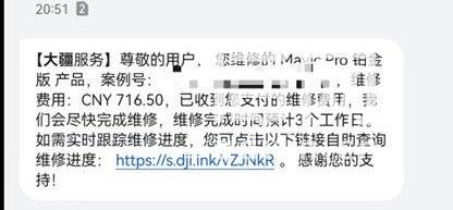 对此,张先生并不认同,他认为自己支付费用进行维修,那么大疆就应该为维修质量负责。结果大疆不仅没有修好,还在发生事故后拒绝售后。他希望大疆方面能够依法赔偿并道歉。