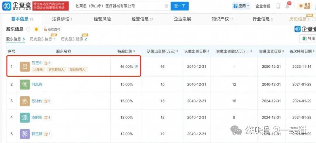 佐兰雅公司前法人吕某则为佐莱恩(佛山市)医疗器械有限公司的大股东。