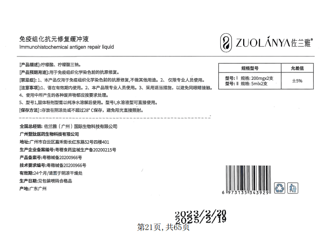 佐兰雅公司的产品说明